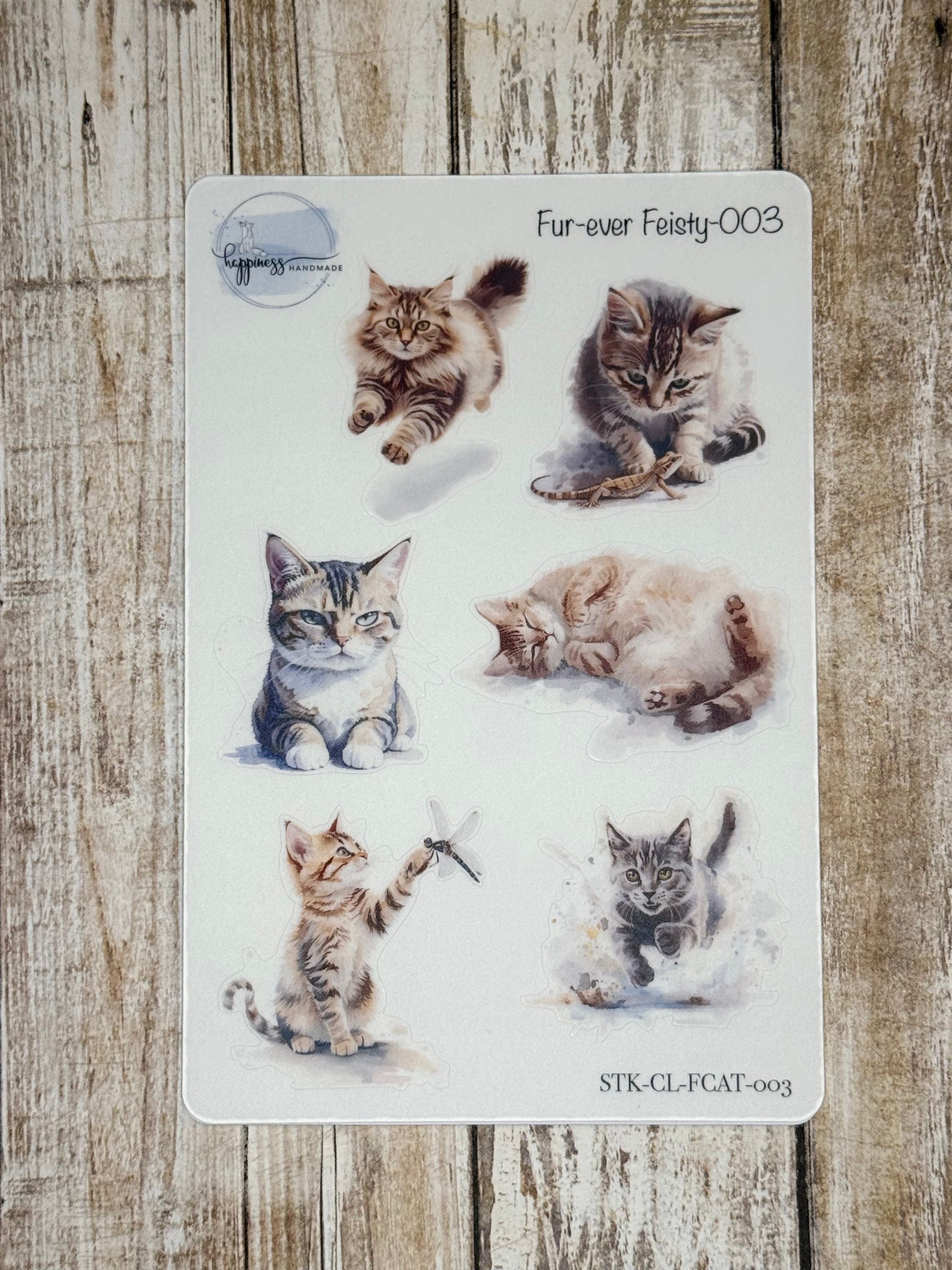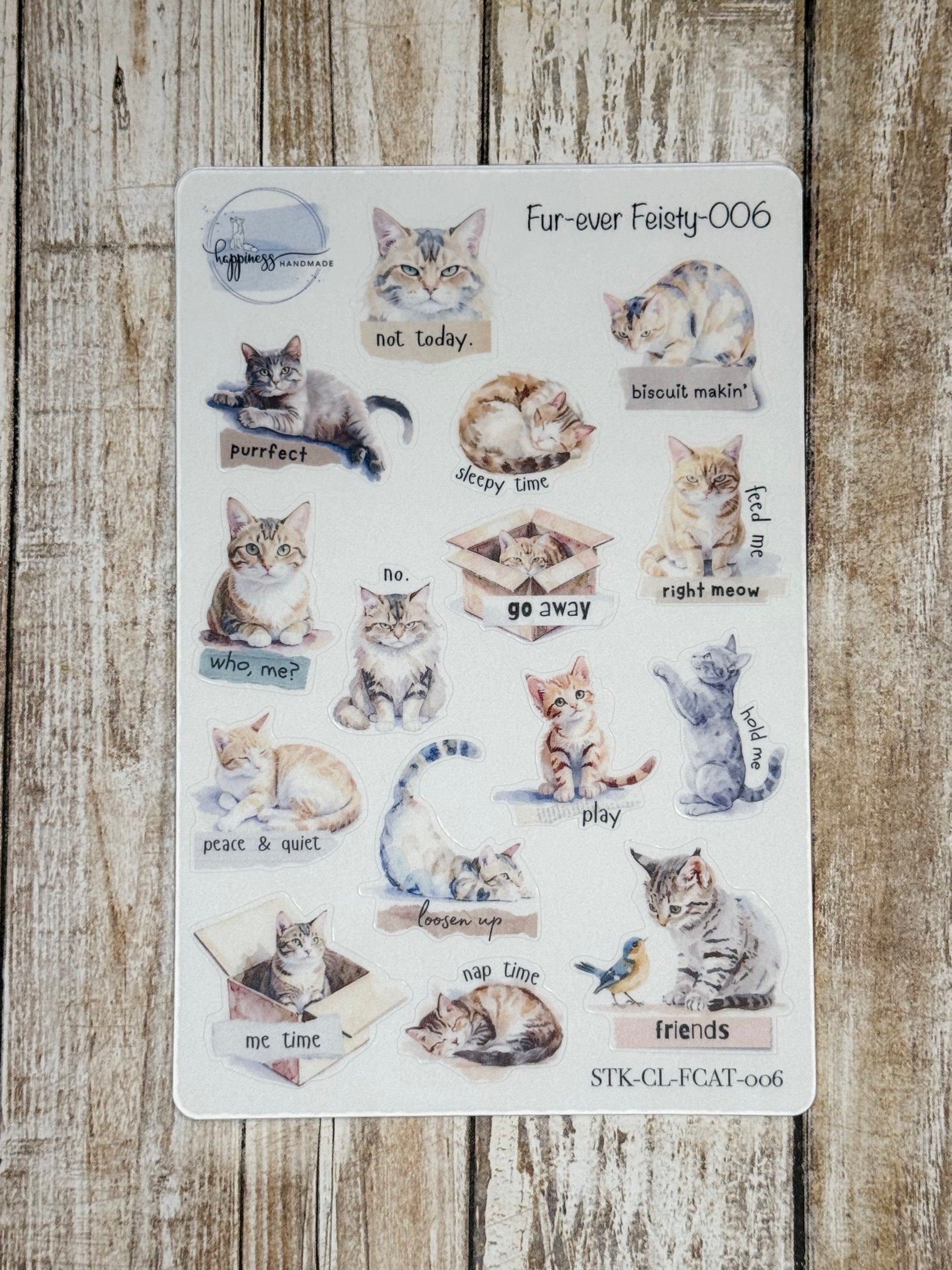 Bring playful feline charm to your everyday essentials with Fur-ever Feisty cat stickers. Each design captures the sassy spirit and quirky personality of your favorite furry friends. Whether you're a devoted cat lover or looking for a fun gift, these adorable designs add instant personality to any surface. So, whether it's the love you have for your cat or the love of cats in genera...this collection has you covered! 006 is perfect to capture the vibe of your day in your Hobonichi or daily journaling routine.
